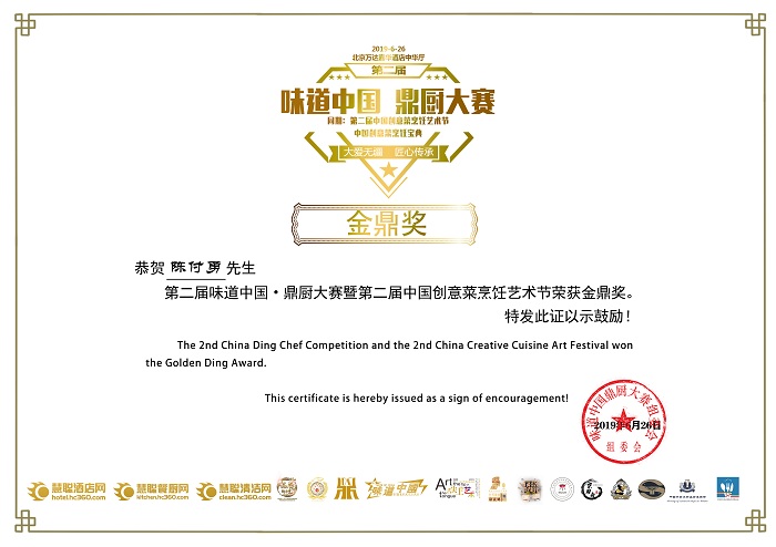 6月26日,第二届味道中国鼎厨大赛暨第二届中国创意菜烹饪艺术节华丽落幕!椿萱茂科学膳食团队以实力得到了专业评委的高度认可:远洋椿萱茂科学膳食总监陈付勇获得【十大名厨】称号,药膳金鼎奖;京1区科学膳食总监杜岳获得【中国好厨师】称号,优秀作品奖。